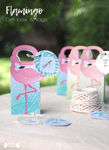 J’ai crée de petits boîtes sachets en forme de flamand rose où le long cou du volatile crée la petite anse du sachet. Cela permet d’y glisser quelques surprises ou confiseries afin de faire des cadeaux d’invités.