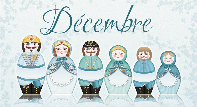 Je vous offre un petit aperçu de cette création avec le calendrier à imprimer du mois car évidemment ce thème de poupées russes convenait parfaitement pour un mois de Décembre féérique.