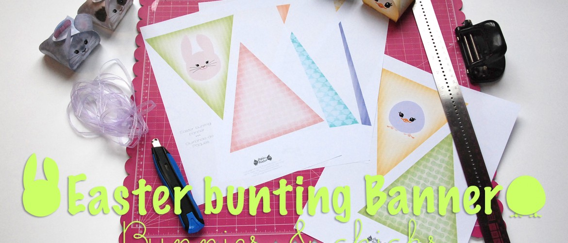 So here is my pastel bunting banner inspired by my Easter favor boxes. It’s a nice activity with children: cut around the template, punch holes at both end of pennants, use a nice ribbon and here you go.