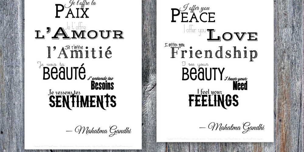 And as I speak of inspiration, I used the words of a great man to bring myself some peace and beauty. I used all the fonts even though they were quite numerous to create a printable of one of Gandhi’s quotes :