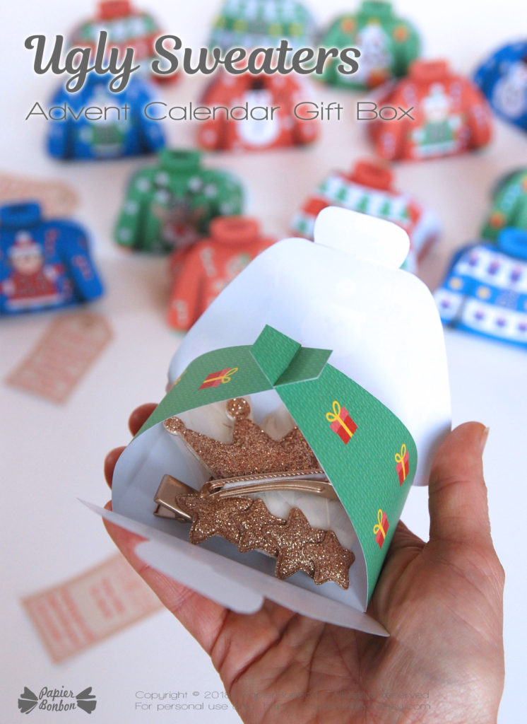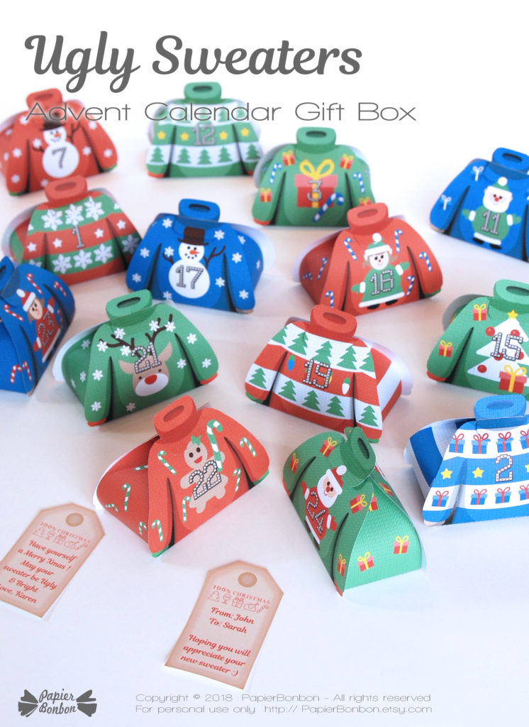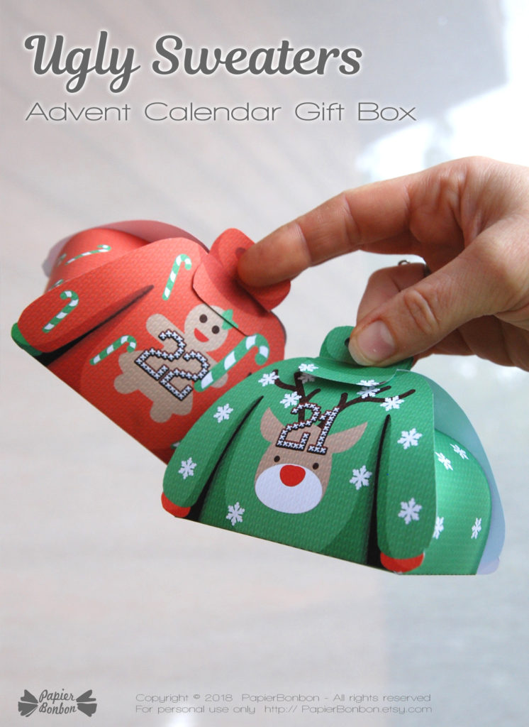 These cards have the design of the Ugly Sweater Advent Calendar and will fit in perfectly. Nonetheless you can use them in any Advent Calendar so that they will help you filling them not only with gifts.