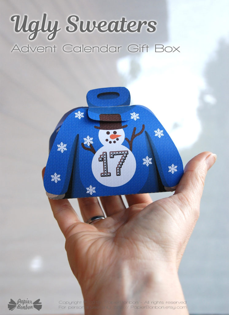 I think Ugly sweaters are a good way to stop fussing or worrying about the perfect Xmas. No urge to be absolutely happy or to create the perfects moments, this advent calendar was made for those who take life on the good side. That’s why I own a ugly sweater myself. A bright red one as it should be.