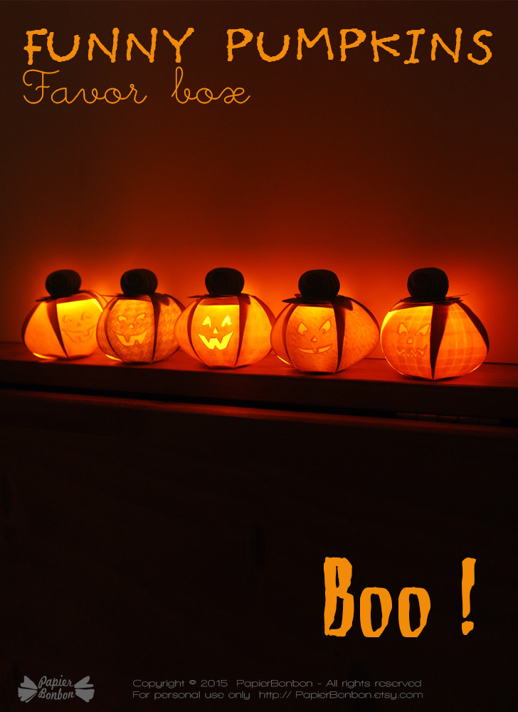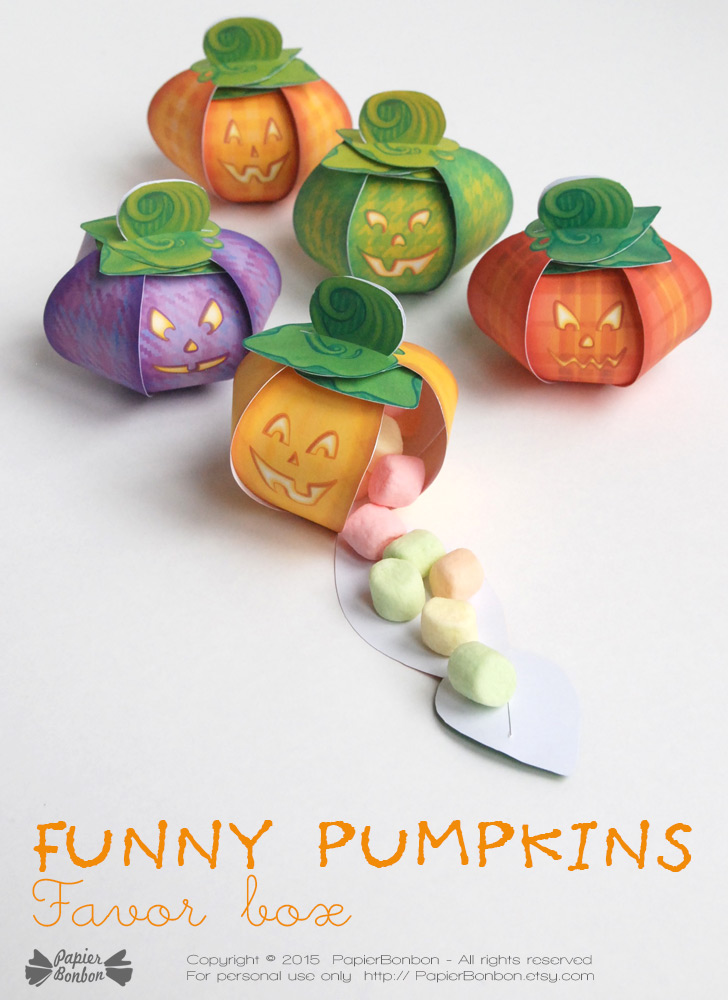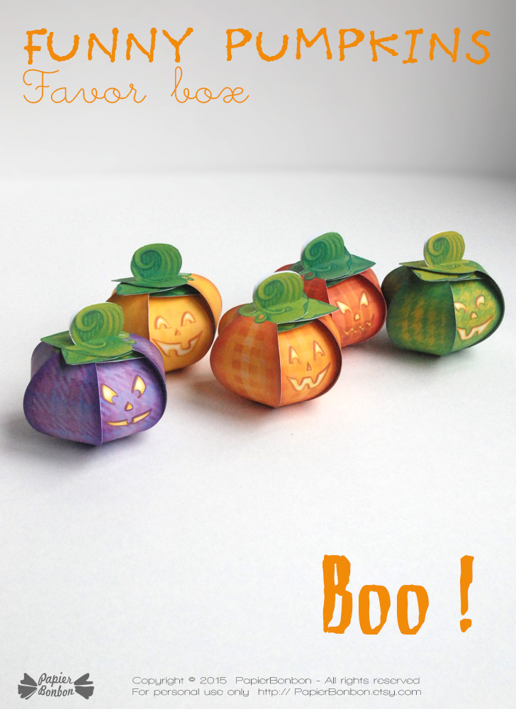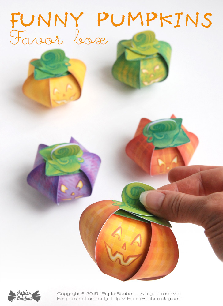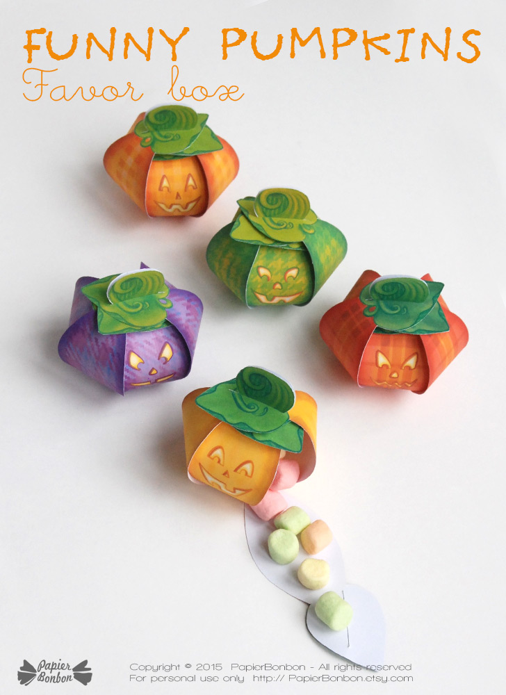 As usual, I like to create easy favor boxes to build, so no gluing is necessary. Find out more on the pumpkin favor boxes on the page from the shop.