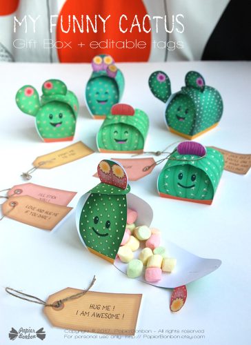 Here is the occasion to make a printable calendar with cactus and to talk about cactus gift boxes I made a while ago and the cactus party decorations that came along.