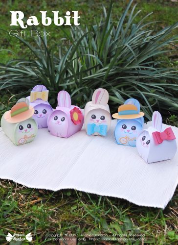 For Easter, I created new gift boxes in the shape of cute pastel rabbits to organize a chocolate hunt in the garden. They are available in the site’s shop: Rabbit gift boxes for Easter