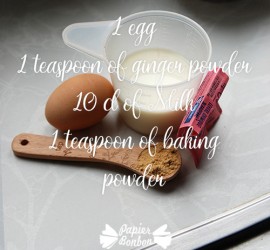 Stir firmly the butter & sugar. Add the egg and milk. Then the flour baking & ginger powder. At last the marshmallows. Cook in the oven at 180°C for about 20 minutes. Serve when lukewarm.