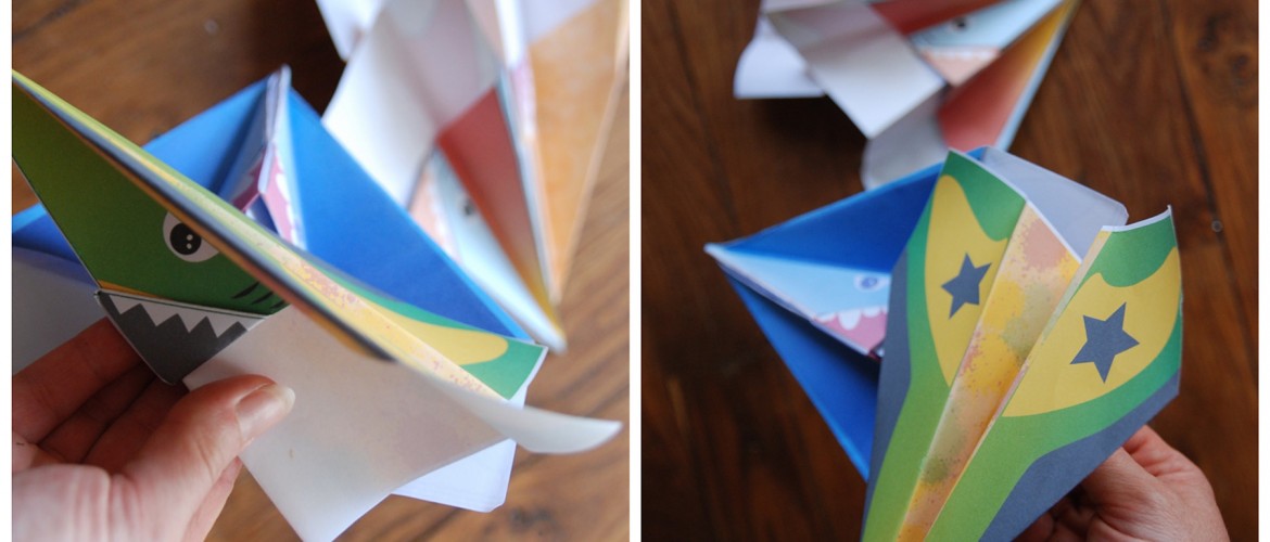 We build a kind of plane in the garden with a little house, our camp bed and plenty of mess from our cellar. The kids were thrilled. Along with all the games we played, I created colorful sheets of paper to print and to fold into paper planes.