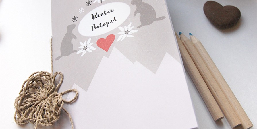 Groundhogs & edelweiss from February printable calendar made me want to create another little notepad for our many daily notes, this Winter (Fall Printable Notepad). This time, I thought it would be nice to be able to personalize it. It’s about 3.5 inches X 5 1/4 inches.