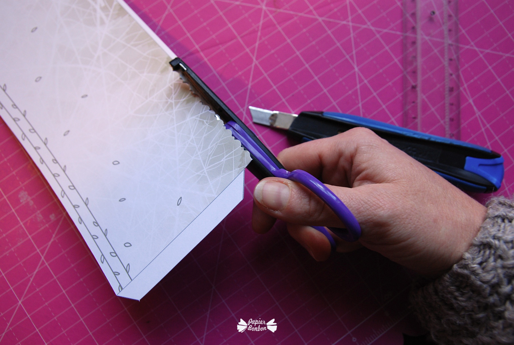 Alors une fois n’est pas coutume, j’ai sorti plus de matériel que la simple colle. Des ciseaux de découpe fantaisie et le perforateur étoile de mon fils… Chut !