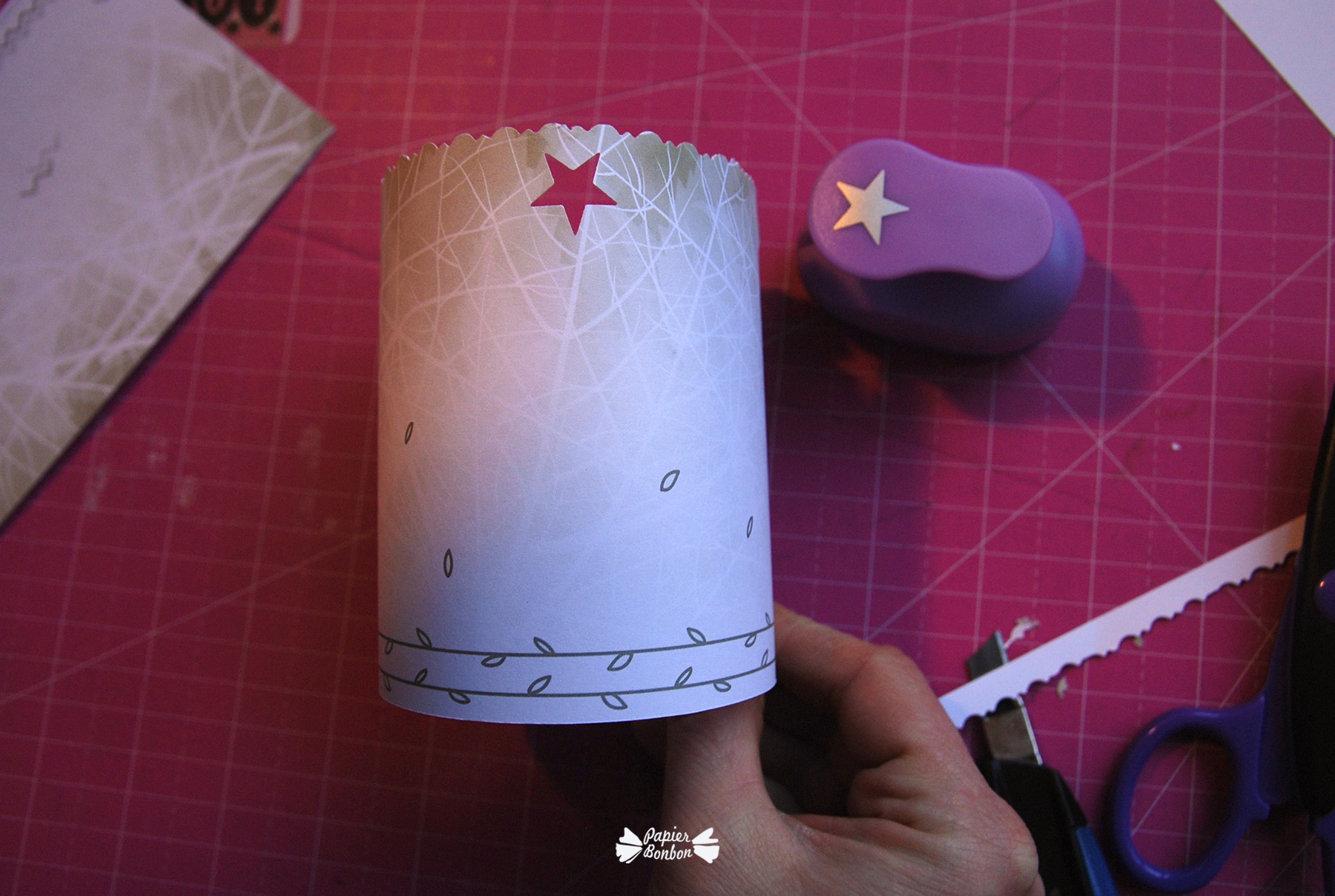 Et bien sûr, j’ai utilisé des bougies led ainsi je n’ai pas eu à protéger le papier par un pot en verre.